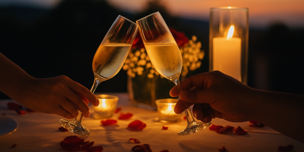 Privates Abendessen unter freiem Himmel mit Blick auf die Landschaft. Kerzen, Blumen und erstklassiger Service nur für Sie sorgen für die richtige Atmosphäre.