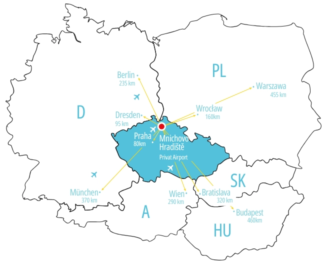 Der schnellste Weg zu uns führt über die Autobahn D10 (Prag–Liberec). Unsere Gäste können auf dem Außenparkplatz direkt am Hotel parken.